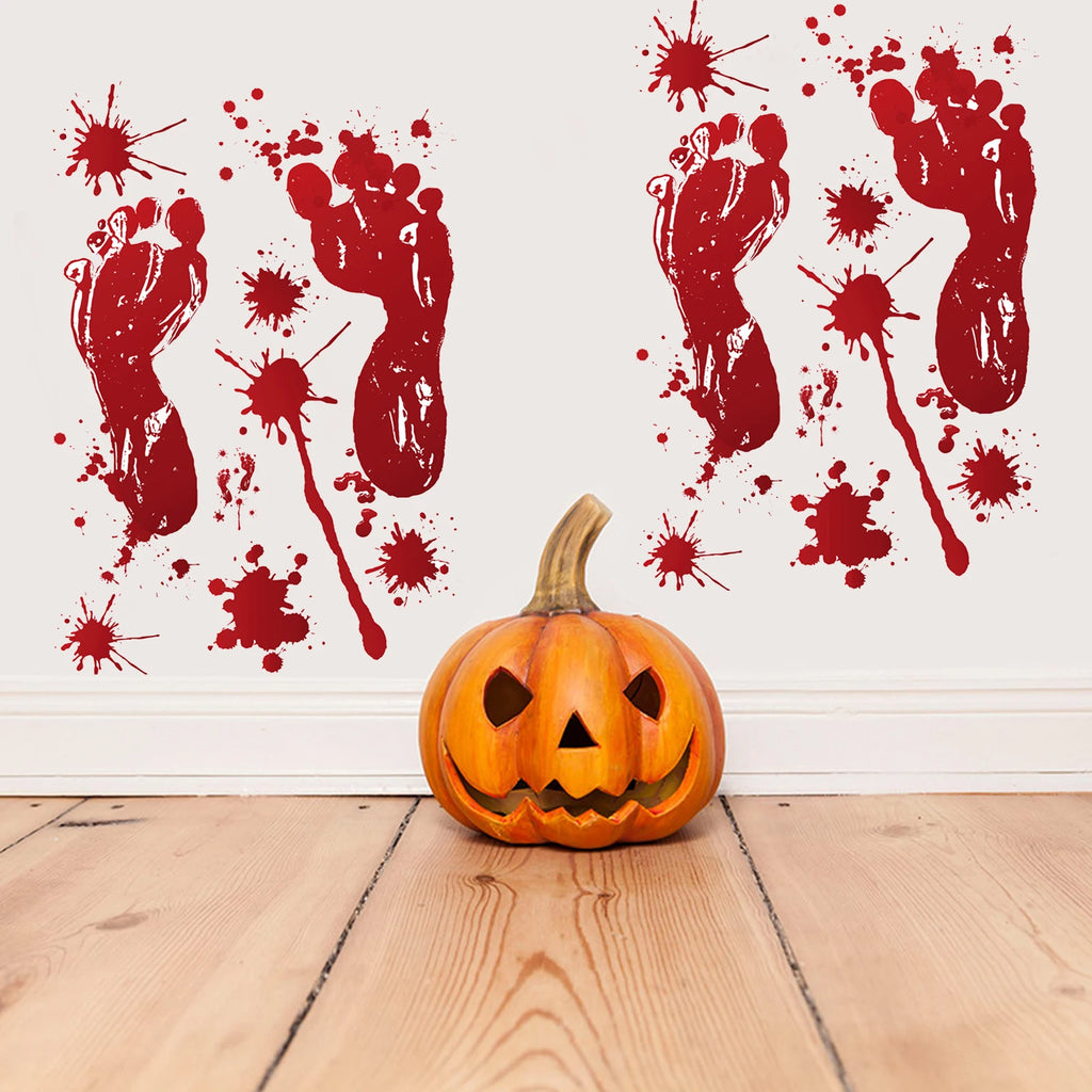 Halloween Bloody Stickers Halloween Wall Decal Create Horror Scenes Bloody Footprints Floor Window Clings For Indoor Outdoor